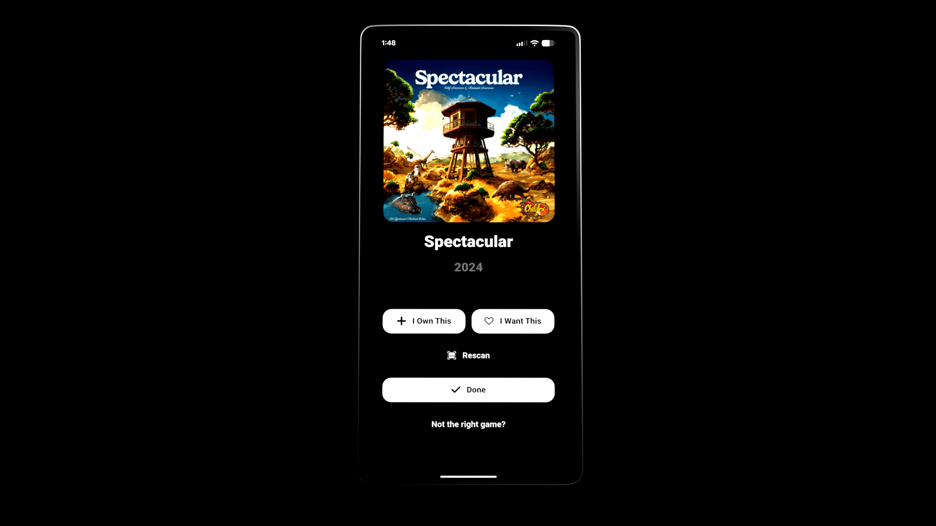Once your game has been scanned you will be taken to its game page. Here you can choose to add it to your collection or add it to your wishlist. If you didn't get the right game though you have some options. Pick from a selection of related games, or try to rescan.